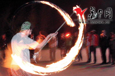 10月29日晚,在山东理工大学校园内,该校一名来自澳大利亚的外教表演了他们国内传统的火把杂技。10月31日是西方的“鬼节”万圣节,山东理工大学的外教们让他们的学生在这里体会了一回洋节。 昏暗的南瓜灯、诡异的面具和脸谱……学生们对参加这种聚会有着他们的理解:“许多酒吧、迪厅之类的娱乐场所每逢洋节都会花样百出,而这个时候对于我们这些学生来说,与其花钱去娱乐场所,还不如在外教身边感受这种氛围更自然。”(记者 张磊 摄)