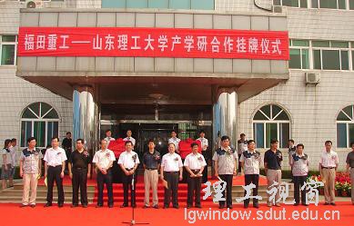 7月13日,山东理工大学与福田重工“技术研发中心”“教学科研基地”在山东福田重工举行挂牌仪式,省经贸委领导、潍坊市及坊子区领导、福田重工董事长王金富和我校副校长姚德一起为“技术研发中心”和“教学科研基地”揭牌。