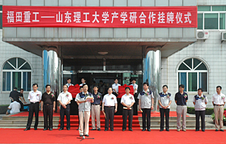 福田重工与山东理工大学在发展过程中已经初步建立了良好的合作关系,为实现双方在产、学、研工作领域的全面合作发展,提高企业和学校科研水平,2006年5月30日,福田重工与山东理工大学在“2006年山东省经贸委产、学、研重大项目签约仪式”上签订了《产学研全面合作协议》等五个合作协议。根据合作协议要求,双方成立“山东理工大学——福田重工教学科研基地”和“福田重工——山东理工大学技术研发中心”。