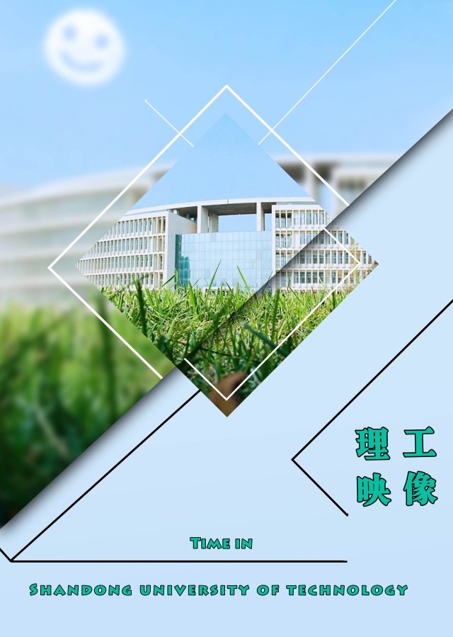 邵逸夫图书馆是山东理工大学的标志性建筑,以它为中心,突出了学校以教育为主,图书馆的建筑以许多矩形排列而成,所以我以白框和黑线条勾勒出海报的主题部分,有序的线条给人一种理性的感觉,作为一名学生,我们要学会用理性的思维去解决问题。校园中的很多建筑都和图书馆有着异曲同工之妙,既有弧线的优美又有棱角的突出,外柔内刚。然而为什么以浅蓝色为主色调呢?当我回忆起山理工的时光时,我希望都如万里无云般的蓝天一样,欢快喜悦,充满幸福的因子。