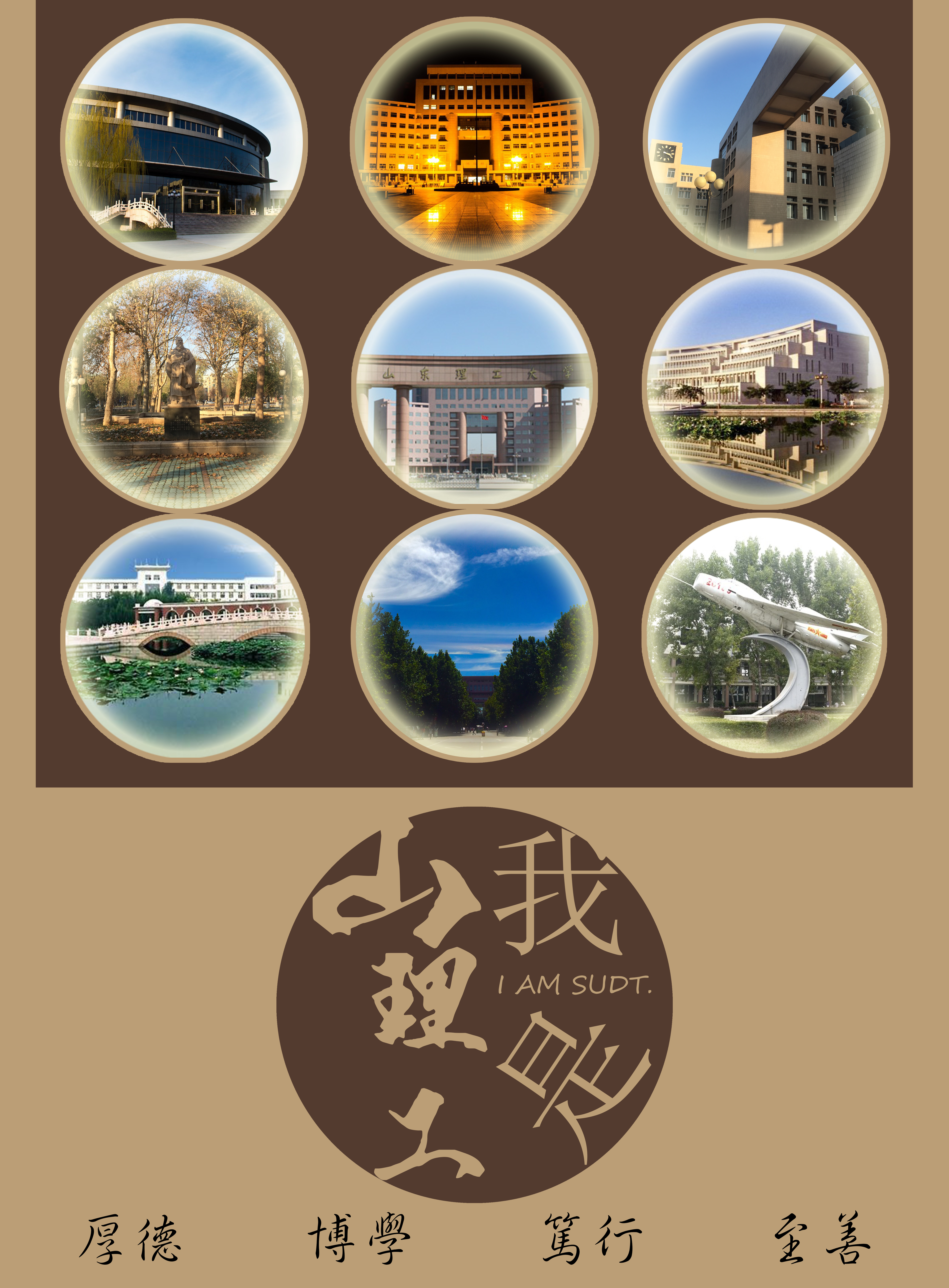 内容方面,山东理工大学坐落在齐文化发源地,人杰地灵,学校以逸夫图书馆为代表的众多标志性建筑更是极具特色,海报中选取了东西两个校区包括大学生艺术中心、鸿远楼、图书馆等建筑的照片,集中体现山理工的校园之风。