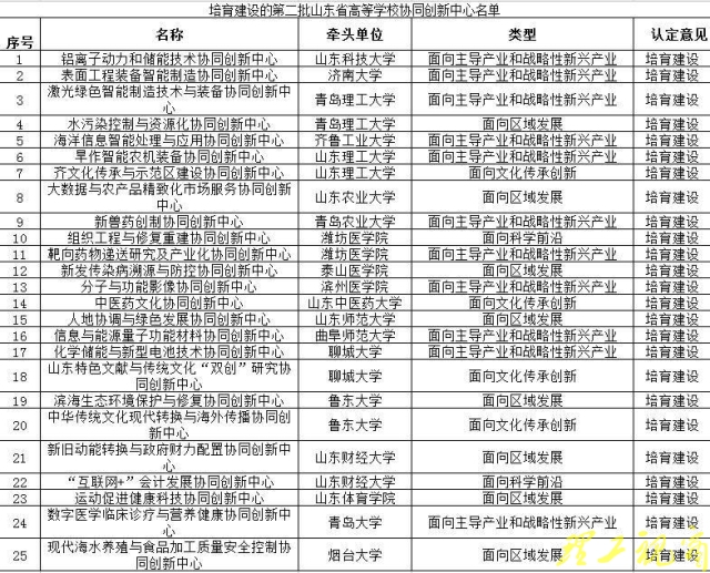 2017年9月13日,山东省教育厅将第二批山东省高等学校协同创新中心认定情况予以公示。