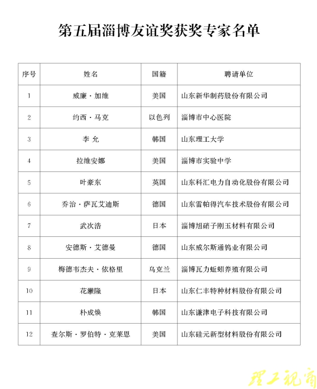 随着我市对外开放不断扩大,越来越多的外国专家来淄工作,并在各行各业中发挥了重要作用,为全市经济社会发展作出了积极贡献。根据淄博友谊奖评审有关规定,市政府决定,授予威廉·加维先生等12名外国专家第五届淄博友谊奖。