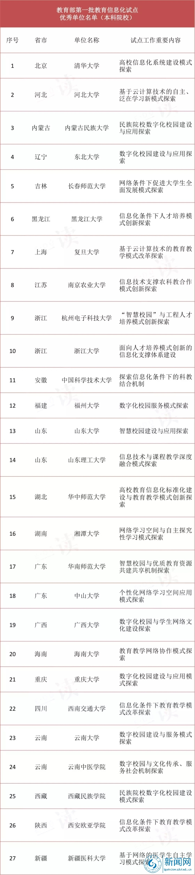 教育部第一批教育信息化试点优秀单位名单(本科院校)