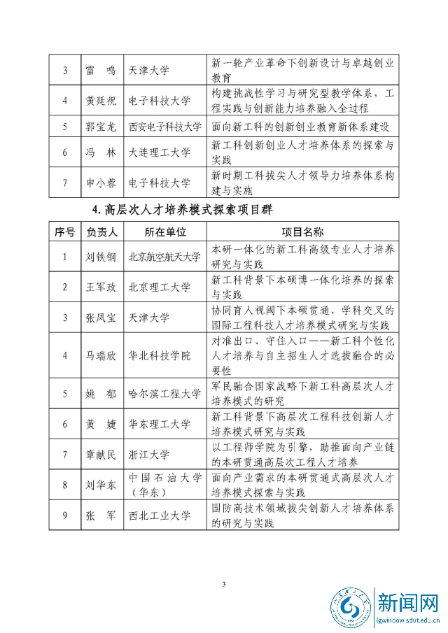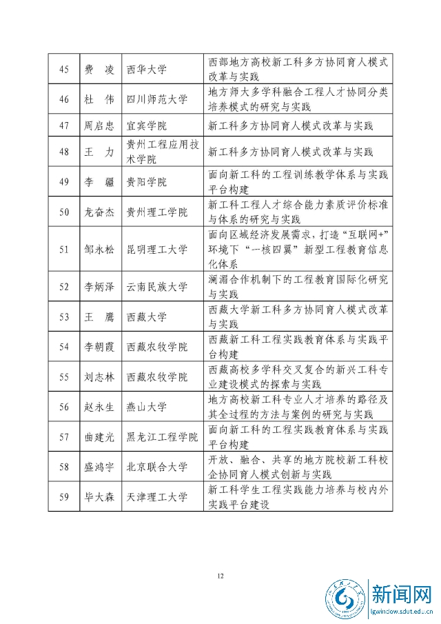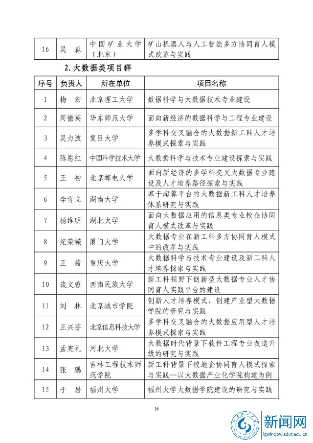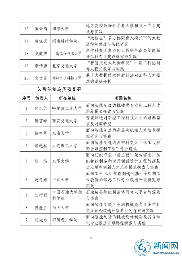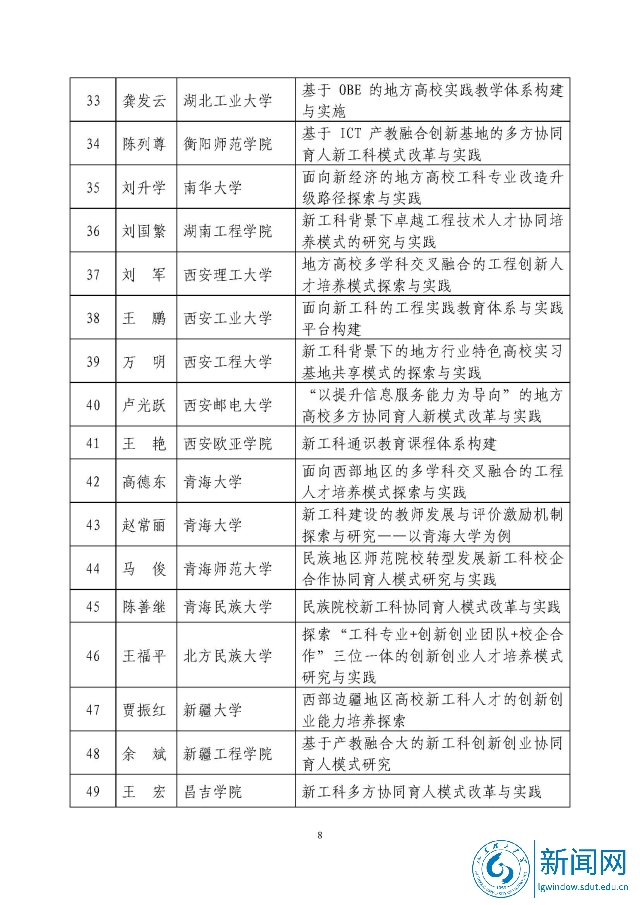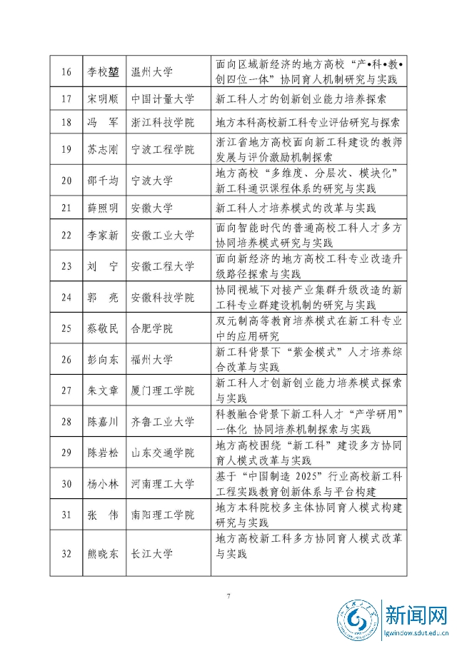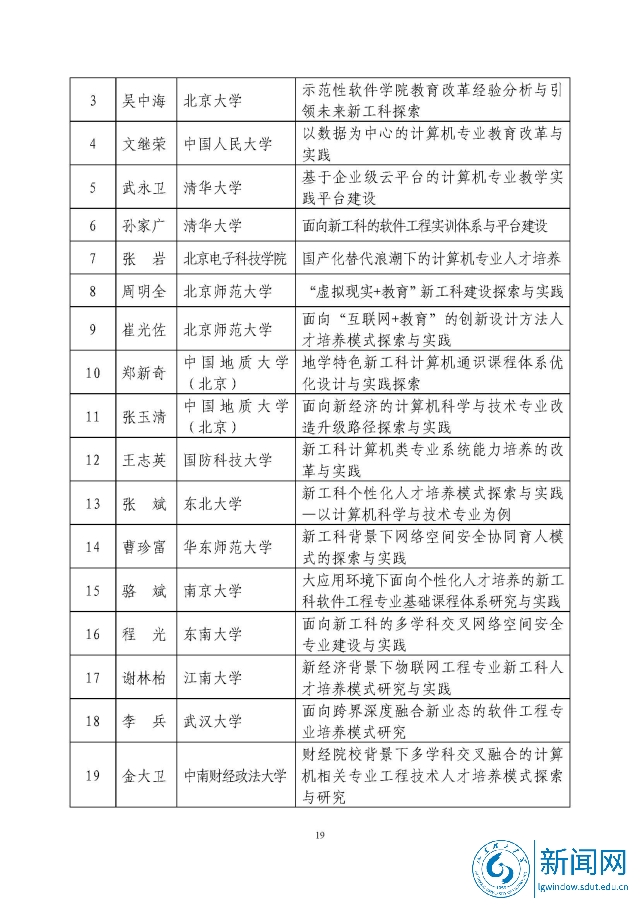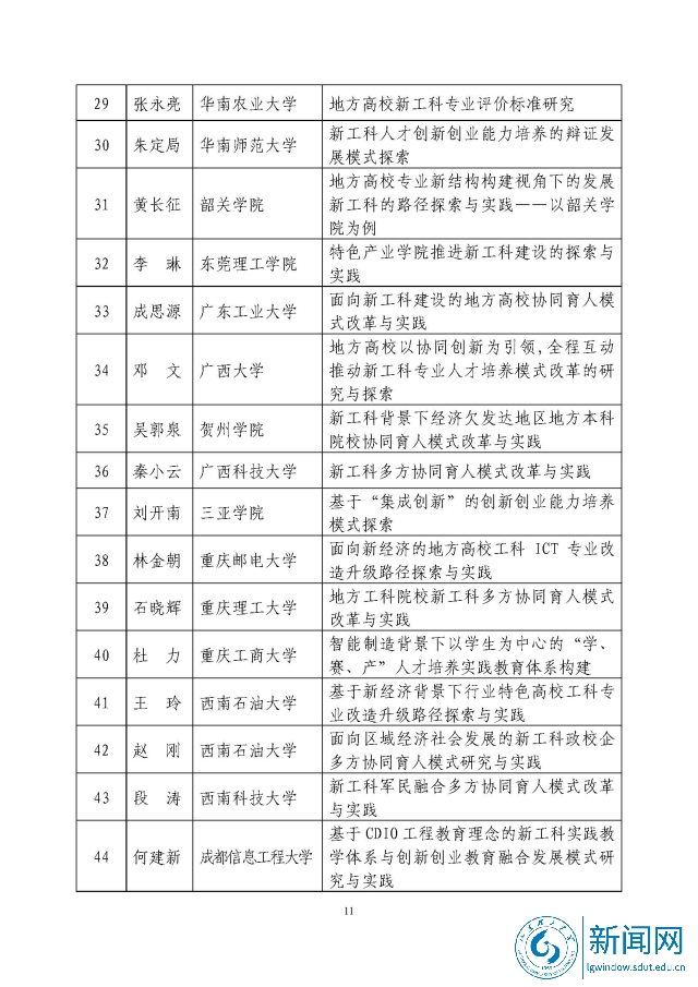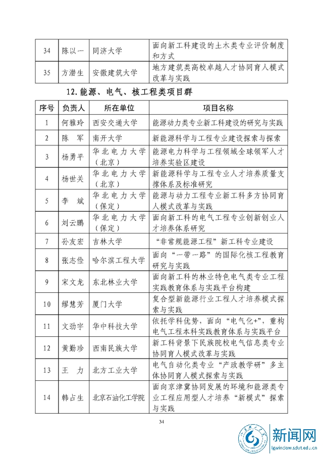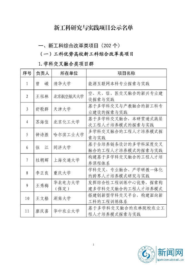 新工科研究与实践项目公示名单
