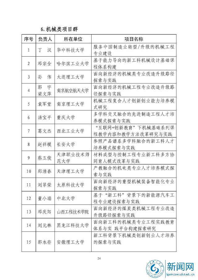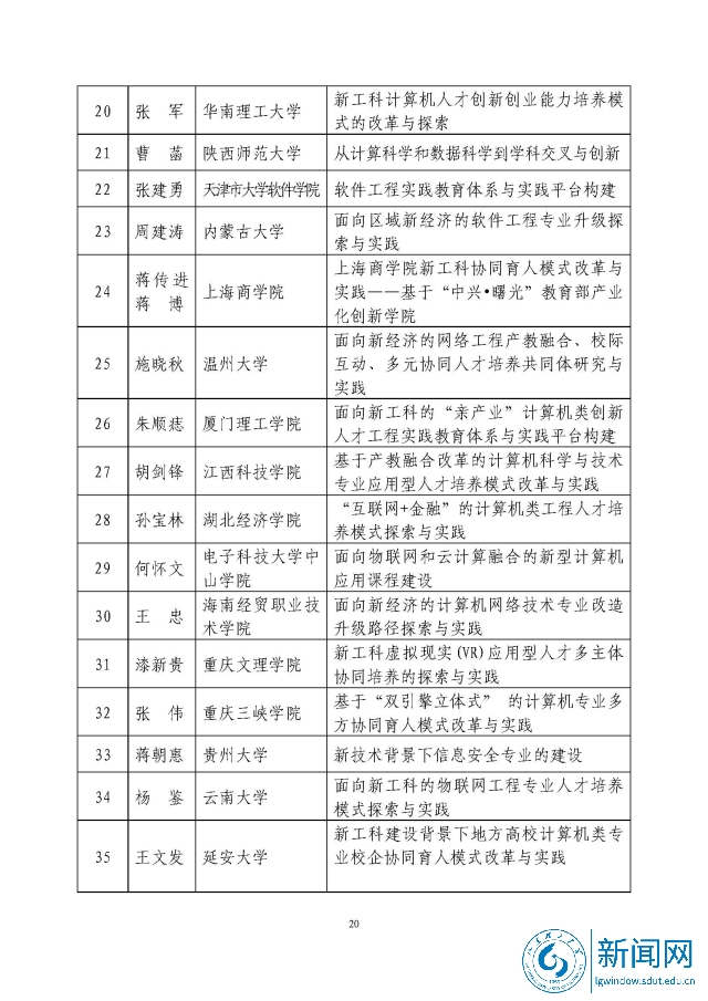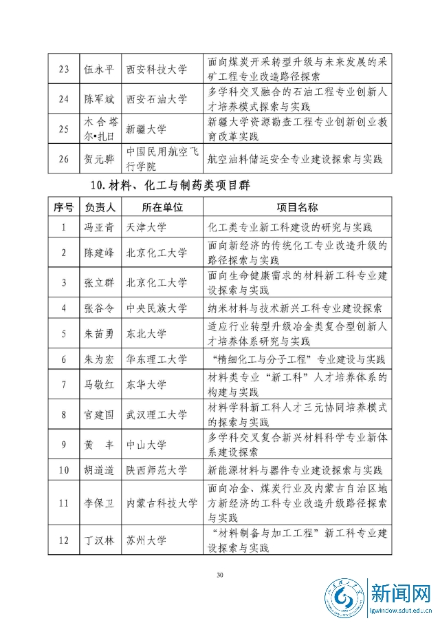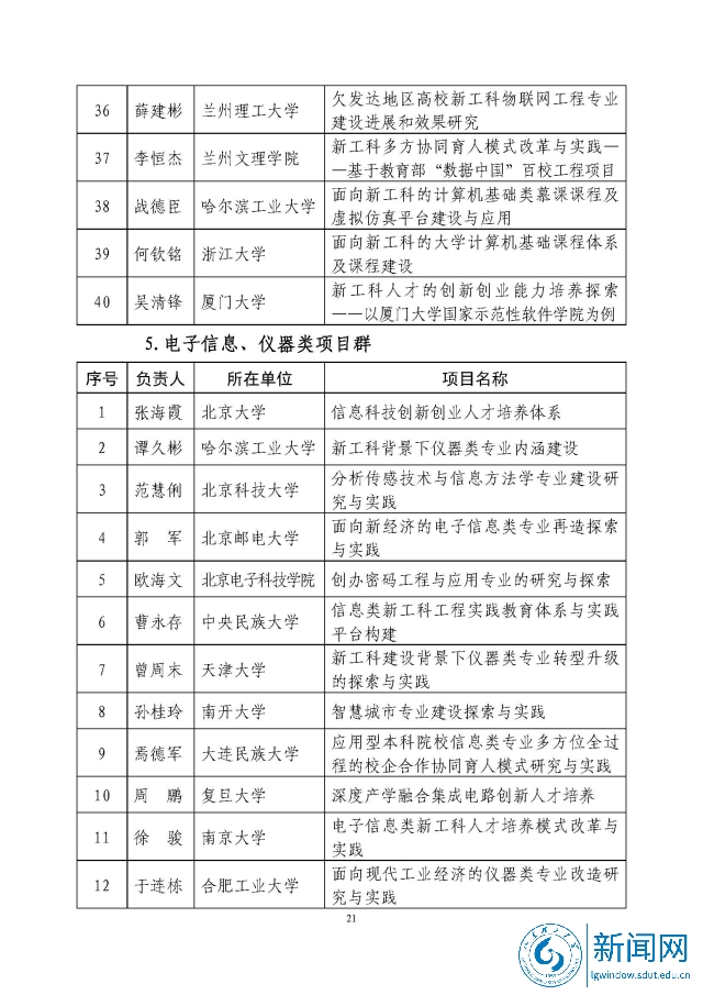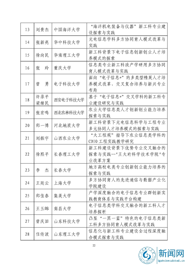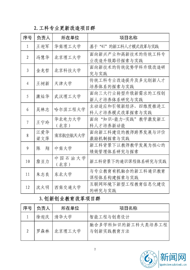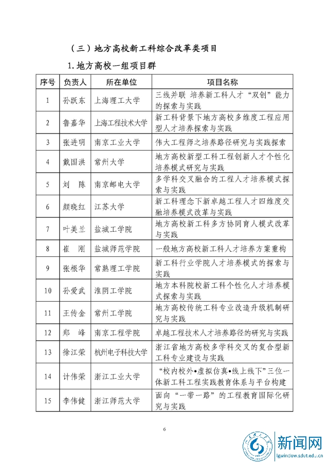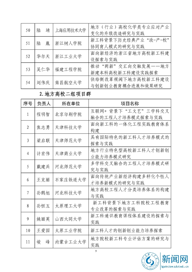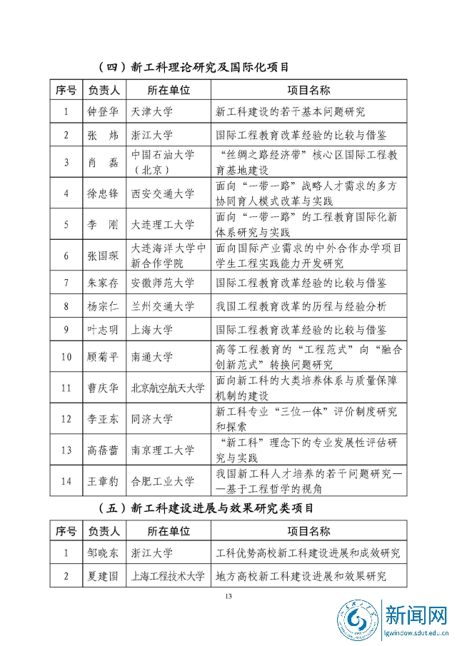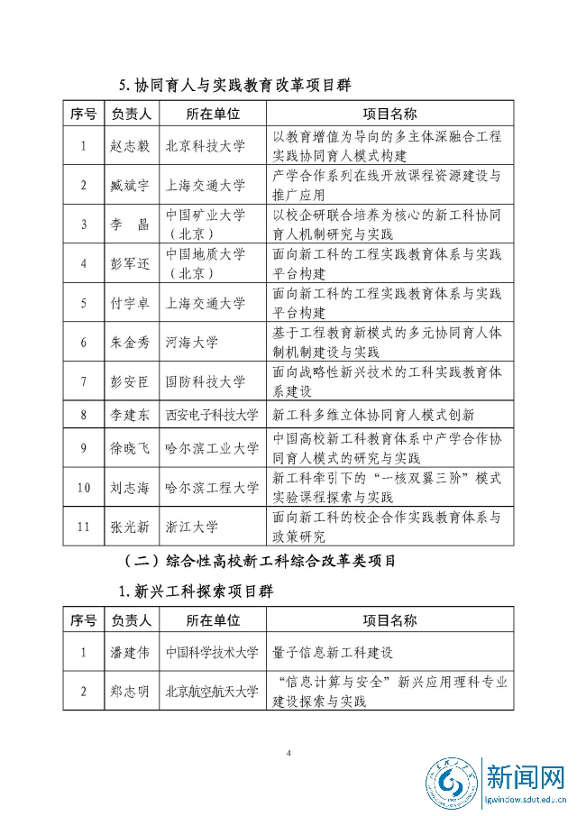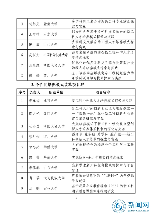 新工科研究与实践项目公示名单