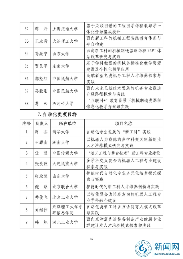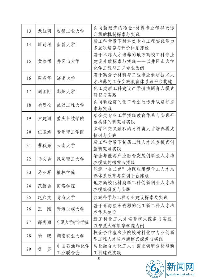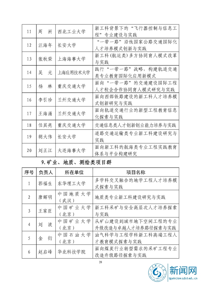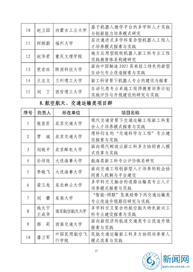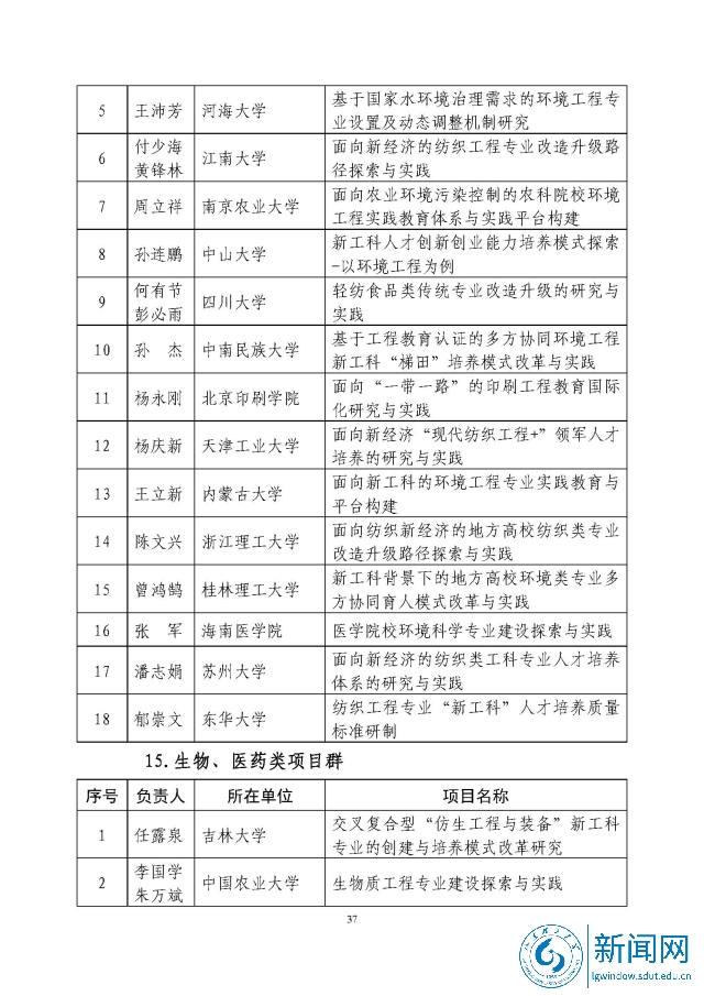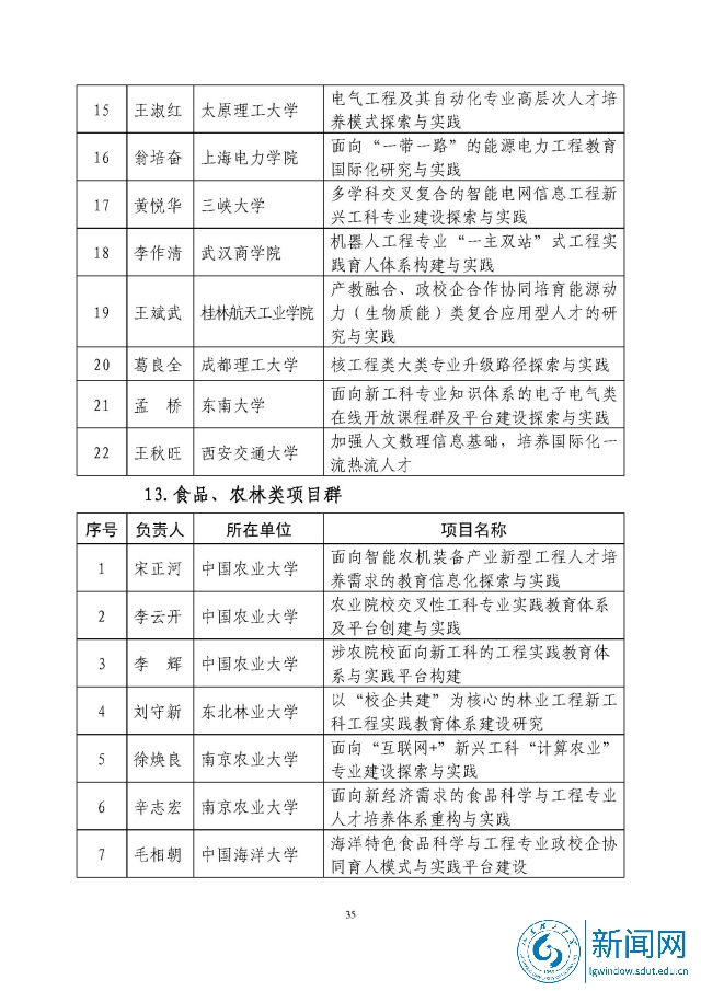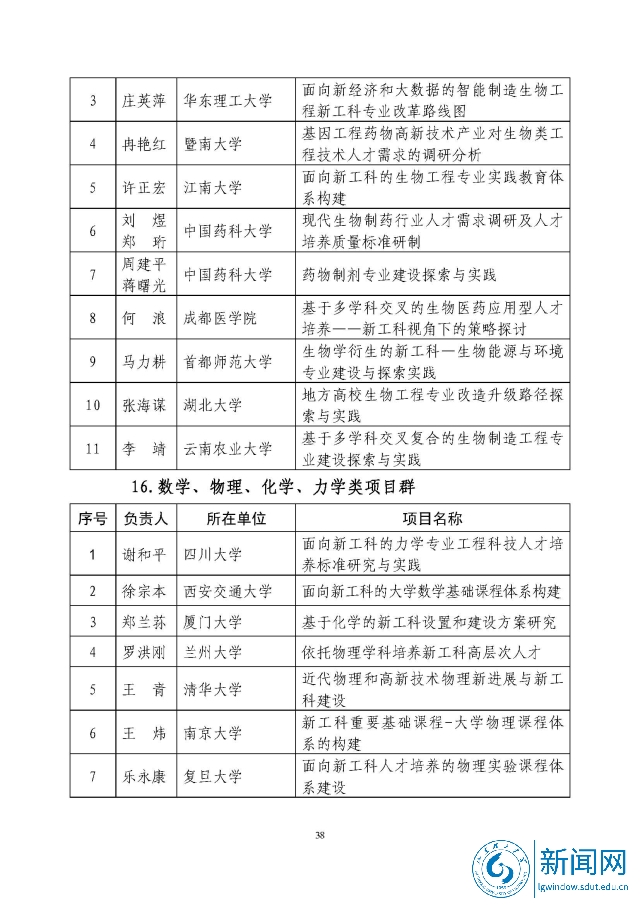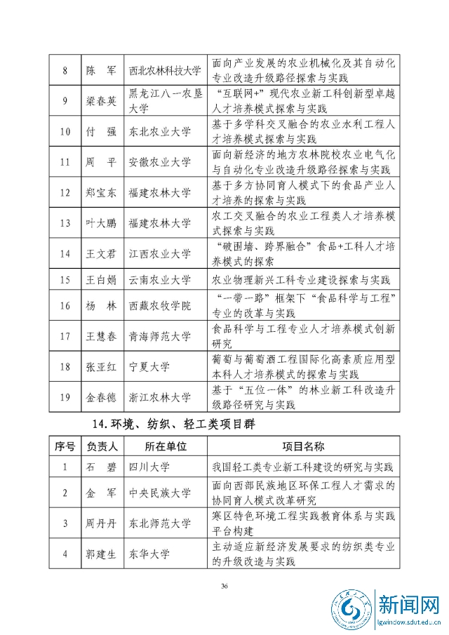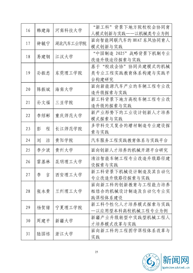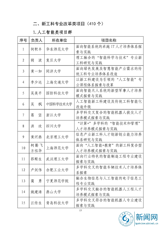 新工科研究与实践项目公示名单