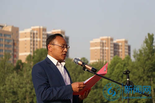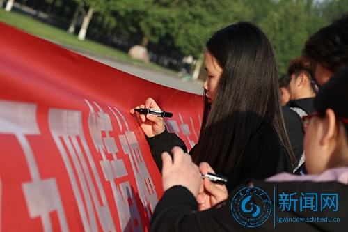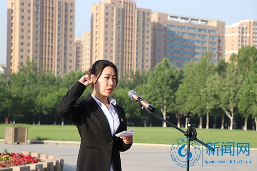 全体师生进行展旗活动。展旗人员高举国旗、党旗、团旗,走至师生面前。随着展旗人员的口号,迎着旗帜,同学们满怀着对祖国的热爱与敬意,向国旗行注目礼。学生代表带领同学们在国旗下进行宣誓,使五四精神烙印在每个人的心中。