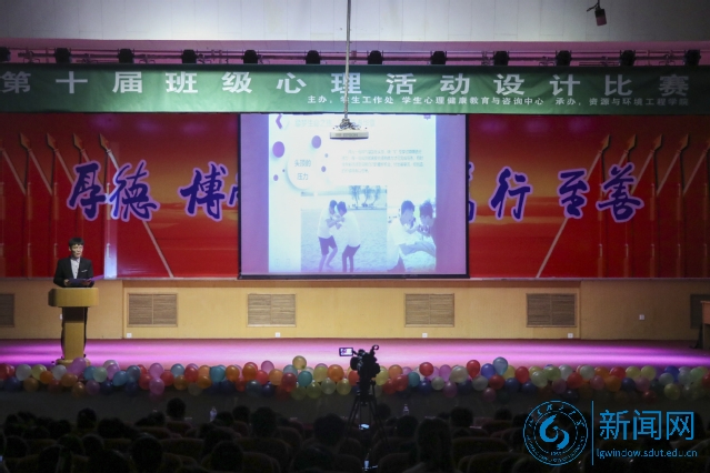 本网讯 5月23日晚,“珍爱自我,悦动青春”第十届班级心理活动设计比赛决赛在三号教学楼报告厅举行,此次比赛由学生工作处、学生心理健康教育与咨询中心主办,资源与环境工程学院承办,学生工作处副处长、资环学院党总支副书记、团总支书记到场观看。