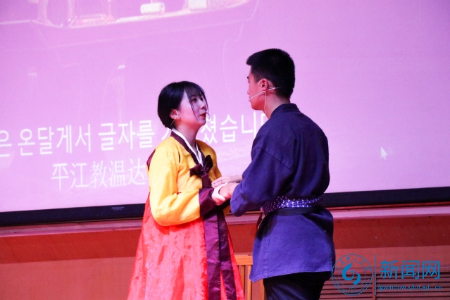 比赛开始,主持人介绍舞台剧简介、比赛评分细则以及奖项设置。同学们精心准备节目,为观众呈现作品。《三顾茅庐》故事为求贤若渴典范,学生拓展创新思维,以巾帼角色演绎英雄人物,经典历史与现代元素相结合突出别样风采。《白雪公主》以不同场景展开故事情节,连贯剧情,用童话人物角色诠释趣味童心,展现青年学生活力状态。《平壤绝恋》的表演触动人心,展现国家之间的文化交流。