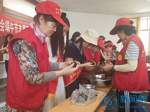 本网讯 6月2日上午,“志愿服务,粽香理工”系列活动二之“爱心大妈爱心粽”活动在东校区1号教学楼东一合堂举行。此次活动由淄博市关爱帮扶老年人协会、淄博市“爱心大妈”志愿服务中心、经济学院联合举办,淄博市关爱帮扶老年人协会常务副会长兼秘书长、学院部分学生参加。