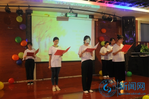 本网讯 6月5日晚,外国语学院在大学生事务中心多功能厅举行英文歌曲演会及教育技能实训成果展演活动,学院优秀教师及2018级辅导员担任评委,学院2018级英语教育系部分学生参加。