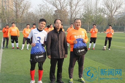 本网讯 12月7日下午,生命科学学院与金城医药足球友谊赛在学校第一体育场举行。此次比赛由金城医药负责人、学校副校长易维明、生命学院副院长、生命学院师生代表及金城医药部分员工参加。