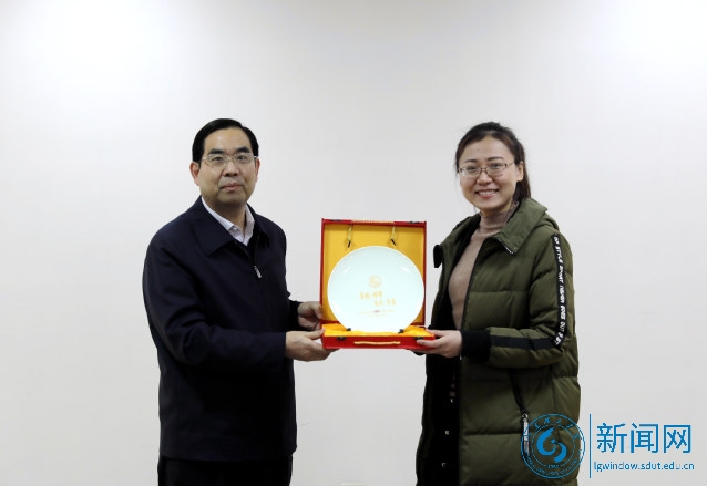 吕传毅向马美博士表示祝贺,并代表学校向她赠送了刻有校训的瓷盘纪念品。