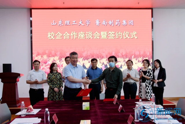 本网讯 5月28日上午,我校与鲁南制药集团战略合作签约仪式,在大红炉众创空间二楼会议室举行。校党委副书记胡兴禹,党委常委、副校长魏修亭,鲁南制药集团党委委员、副总经理李宝杰出席仪式,我校党委宣传部、招生就业处、生命科学学院有关负责人及鲁南制药集团相关部门负责人参加仪式。