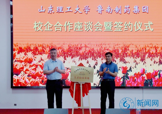 胡兴禹、李宝杰共同为鲁南制药集团人才培养基地揭牌。