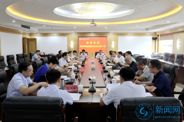 本网讯 7月15日上午,菏泽学院党委书记衣玉琛,党委副书记、院长姜同松,党委委员、副院长孟令美、刘兴坦一行10人来校访问交流。校党委书记吕传毅,党委副书记胡兴禹,党委常委、副校长刘国华及相关部门负责人,与衣玉琛、姜同松一行在鸿远楼九楼会议室进行了座谈交流,胡兴禹主持座谈会。
