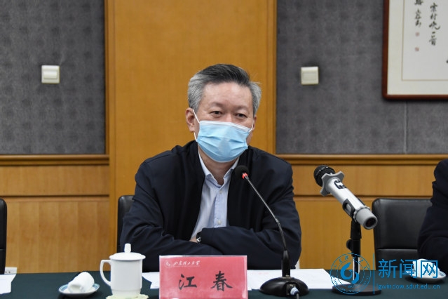 在观看山东理工大学宣传片后,吕传毅致辞,对江春一行来校表示热烈欢迎。他从“紧盯一个目标、打造两支队伍、落实三个着力”,即紧盯有特色、高水平、国内知名的教学研究型大学建设目标,打造高水平的专业技术队伍和管理服务队伍,着力提升学生成长成才能力、应用基础研究能力、校地融合发展能力等方面,介绍了近年来学校推进高质量内涵式发展的主要思路、经验、做法。
