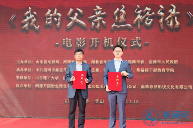 仪式由山东、河南、湖北三省电影局及淄博市委、市政府主办,淄博市委宣传部,博山区委、区政府,焦裕禄干部教育学院承办,我校和中国铁路济南局有限集团公司被确定为支持单位。淄博市委书记江敦涛,山东省委宣传部副部长、省电影局局长程守田,河南省委宣传部常务副部长、省电影局局长曾德亚,湖北省委宣传部电影处处长何文正,焦裕禄二女儿焦守云作了讲话。胡兴禹和北京松茂影视文化有限公司总经理李想交换了合作签约文本。