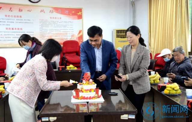 本网讯 10月23日上午,在重阳节来临之际,我校在离退休处会议室举办一年一度的集体生日会,13位离退休老同志欢聚一堂,共同庆祝70周岁生日。校党委副书记胡兴禹和离退休处相关人员来到活动现场为离退休老同志祝寿。
