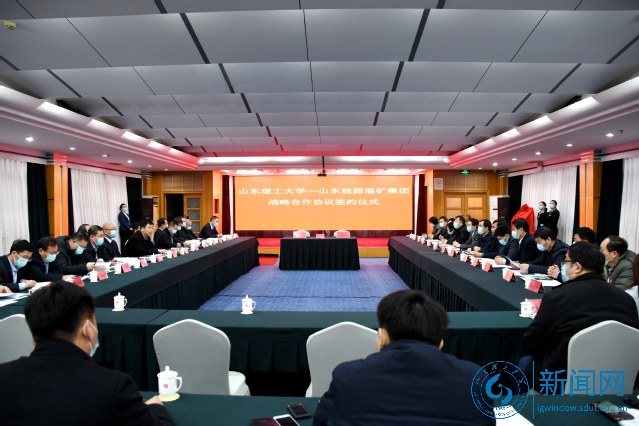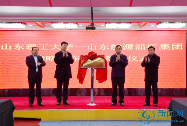 本网讯 1月22日下午,我校与山东能源淄矿集团战略合作协议签署暨共建光电新材料联合工程实验室揭牌仪式在杏园北楼二层会议室举行。党委书记吕传毅,党委副书记、校长胡兴禹,党委常委、副校长苏守波,山东能源淄矿集团党委书记、董事长黄书翔,党委委员、常务副总经理李文,副总经理包政礼出席仪式,我校有关部门、学院负责人,淄矿集团部分下属企业、相关部门负责人等共计30余人参加活动。仪式由胡兴禹主持。