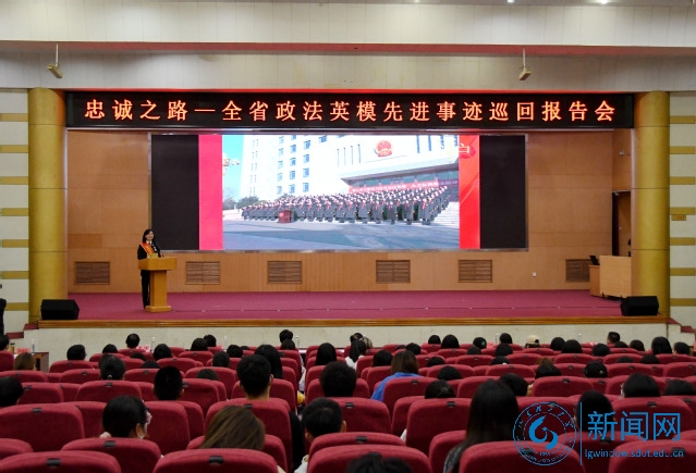 报告会上,淄博市中级人民法院民事审判第三庭副庭长冯慧芳,淄博市博山区司法局党组成员、山头司法所所长王丽丽,山东省女子监狱十一监区监区长徐玉美,梁山县人民法院党组成员、副院长张永杰, 滕州市公安局团委副书记、荆河派出所已故民警杨申事迹报告人、滕州市公安局二级警长朱君,潍坊市公安局刑警支队四大队大队长孙武兴等6名政法英模,用真挚的感情、朴实的语言,讲述了自己以及所在团队的先进事迹。事迹感人至深、鼓舞人心、催人奋进,台下观众为他们的精彩报告报以热烈掌声。