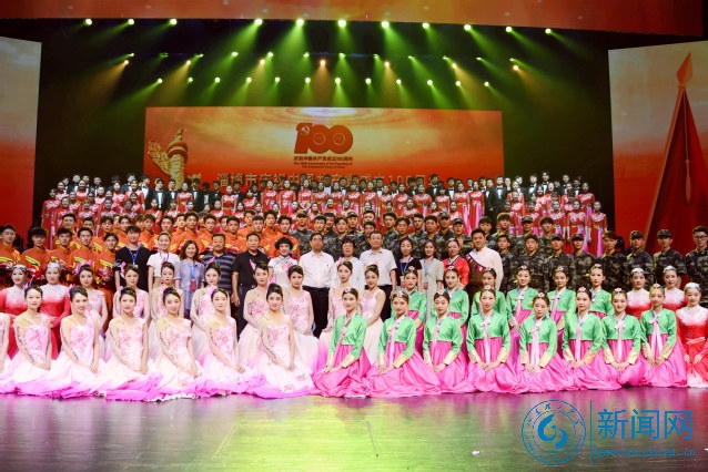 本网讯 6月28日晚,由淄博市委宣传部、市委市直机关工委、市文化和旅游局和市广播电视台共同主办的“淄博市庆祝中国共产党成立100周年文艺演出”在淄博大剧院隆重举行,我校音乐学院220名师生参加演出。校党委书记吕传毅现场观看了演出,演出后看望师生演职人员并合影留念。
