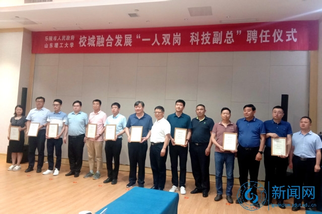 本网讯 7月13日下午,乐陵市—山东理工大学校城融合发展“一人双岗、科技副总”聘任仪式,在乐陵市蓝海钧华大饭店钧乐厅举行。校党委常委、副校长苏守波,乐陵市委常委、组织部部长张因忠,市委常委、宣传部部长盛慧,科技局局长刘艳霞出席,我校服务社会办公室相关负责人、专家教授,乐陵市相关部门负责人、企业家参加仪式,仪式由盛慧主持。