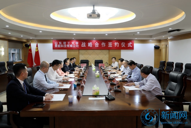 本网讯 9月27日下午,我校与景能科技有限公司战略合作协议签署仪式在鸿远楼九楼会议室举行。校党委常委、副校长苏守波,淄博高新技术产业开发区管理委员会科技副主任朱光明,景能科技有限公司董事、总经理裴波出席,我校服务社会办公室、招生就业处、后勤管理处、电气与电子工程学院负责人等参加仪式。