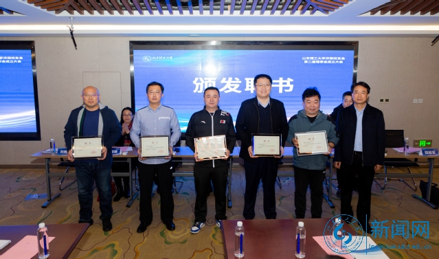 胡兴禹为济南校友会授牌。苏守波为济南校友会会长、副会长、秘书长颁发聘书。
