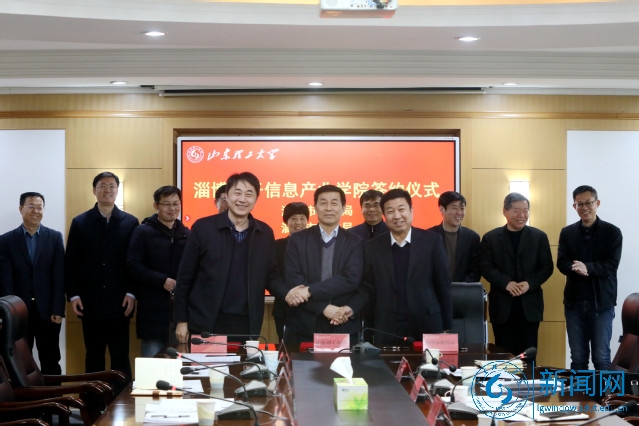 本网讯 12月27日下午,学校与淄博市教育局、科技局共建淄博电子信息产业学院签约仪式在鸿远楼九楼会议室举行。校党委副书记、校长胡兴禹,校党委常委、副校长魏修亭,淄博市副市长毕红卫出席,我校教务处及相关学院负责人,淄博市教育局、科技局负责人参加仪式。仪式由魏修亭主持。