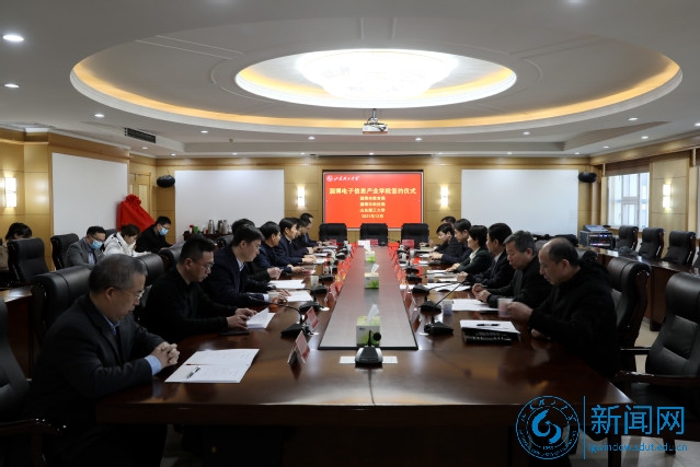 魏修亭代表学校和淄博市教育局、科技局签署了三方共建淄博电子信息产业学院协议。根据协议,学院将依托行业领军企业的先进技术和项目资源,打造政校企合作的新平台,为高水平大学和校城融合发展注入新活力,为地方电子信息产业发展提供强大人才和智力支持。