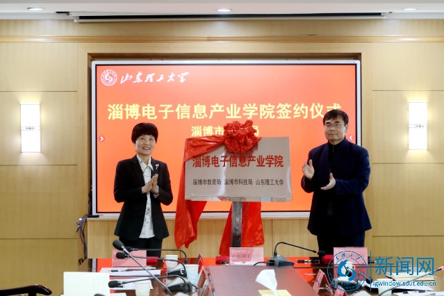 胡兴禹、毕红卫为“山东理工大学淄博电子信息产业学院”揭牌。