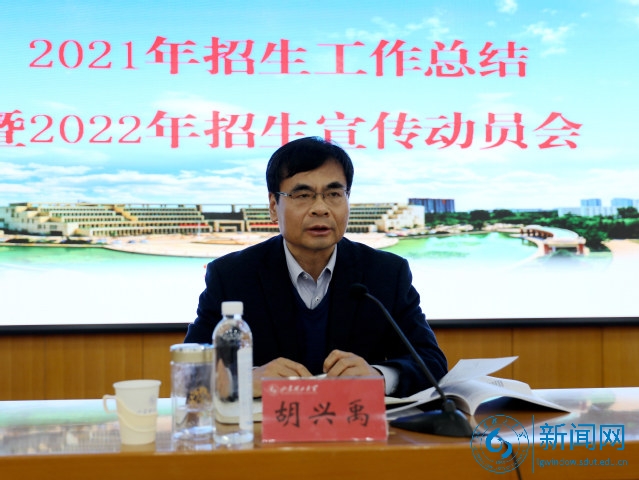 胡兴禹作了讲话,他充分肯定了2021年招生工作取得的成绩,分析了目前工作中存在的短板和不足,并对2022年招生工作提出要求。他指出,生源质量对学校发展具有重要影响,务必要高度重视招生工作,多措并举,争取招收更多优秀生源。