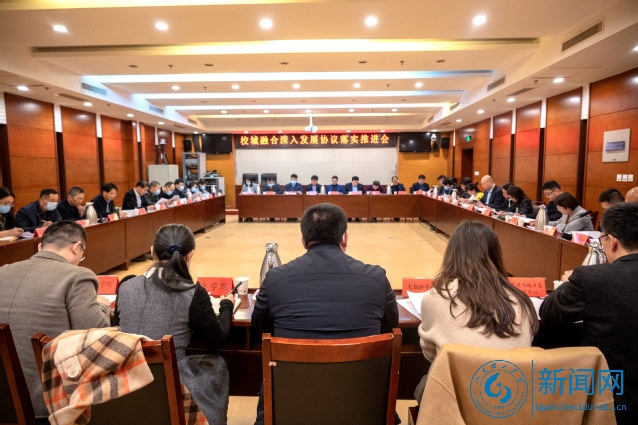 就推进协议的贯彻落实,江贵军强调,一是要切实增强校城融合深入发展的信心。张店区与山东理工大学构建起了血脉相连、共生共荣的命运共同体,校城融合发展已取得硕果累累,双方要进一步增强深度融合发展的信心。二是要共同担负起校城融合深入发展的责任。校城融合深入发展已具备良好基础,希望与会各部门、各单位牢固树立融合发展理念,同向同心同力,实现优势互补、共赢发展。三是要扎实推动“四平台、四高地”合作内容落实落地。聚焦共建山东理工大学科技园、打造科创人才集聚高地等重点领域和关键环节,把校城融合深入发展落实到具体项目、实事上,切实推动合作内容见成果、见成效。